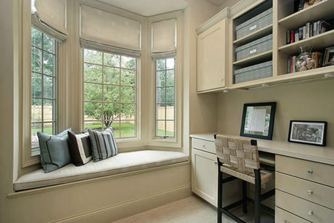 5、在飘窗侧方增加一个吊柜,既不影响我们在飘窗上休闲,还能收藏家居用品。
